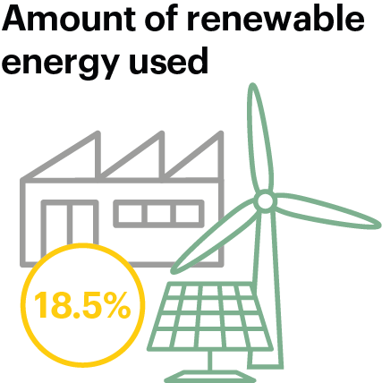 Renewable energy plays an important and growing role in our operations and climate transition. Our efforts are focused on a combination of implementing our own solutions and purchasing renewable energy.