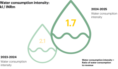 As a global company operating in water-stressed regions, we prioritise reducing our water intensity. Through initiatives such as water harvesting and reuse, we enhance efficiency and demonstrate our commitment to the continuous improvement of sustainable water management across our operations.