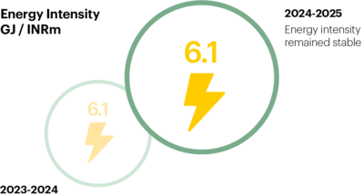 We continuously work to improve our path to Net Zero via process efficiency, renewables, equipment upgrades and technology. Due to significant inorganic growth and consolidation in 2024–2025, our energy intensity remained unchanged, though we aim for sustained climate improvements.
