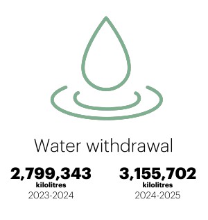 Responsible water management across our operations ensures awareness on all aspects including water withdrawal. We continue to explore solutions, working with service providers to reduce our reliance on freshwater sources and minimise our overall environmental impact.