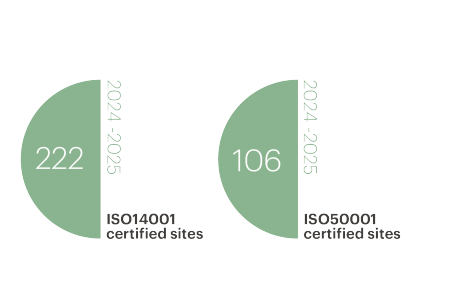 - Achieve ISO 50001 certification and compliance at all manufacturing sites (based on a 2023 operational footprint) by the end of 2030 and new acquisitions within 3 years of integration.